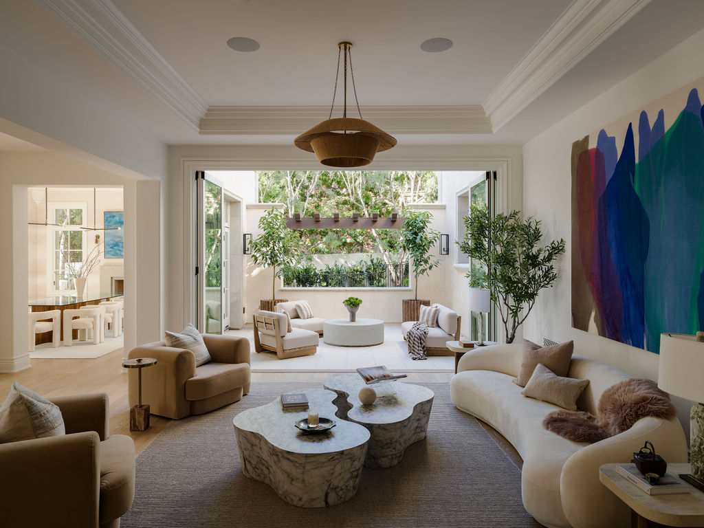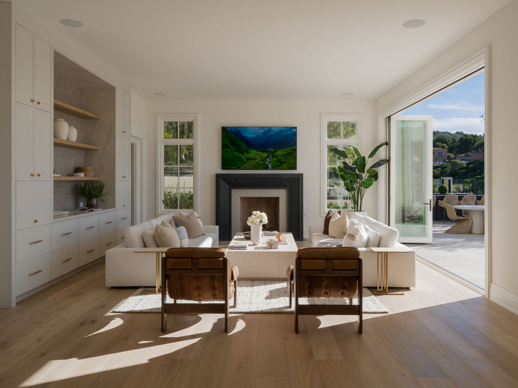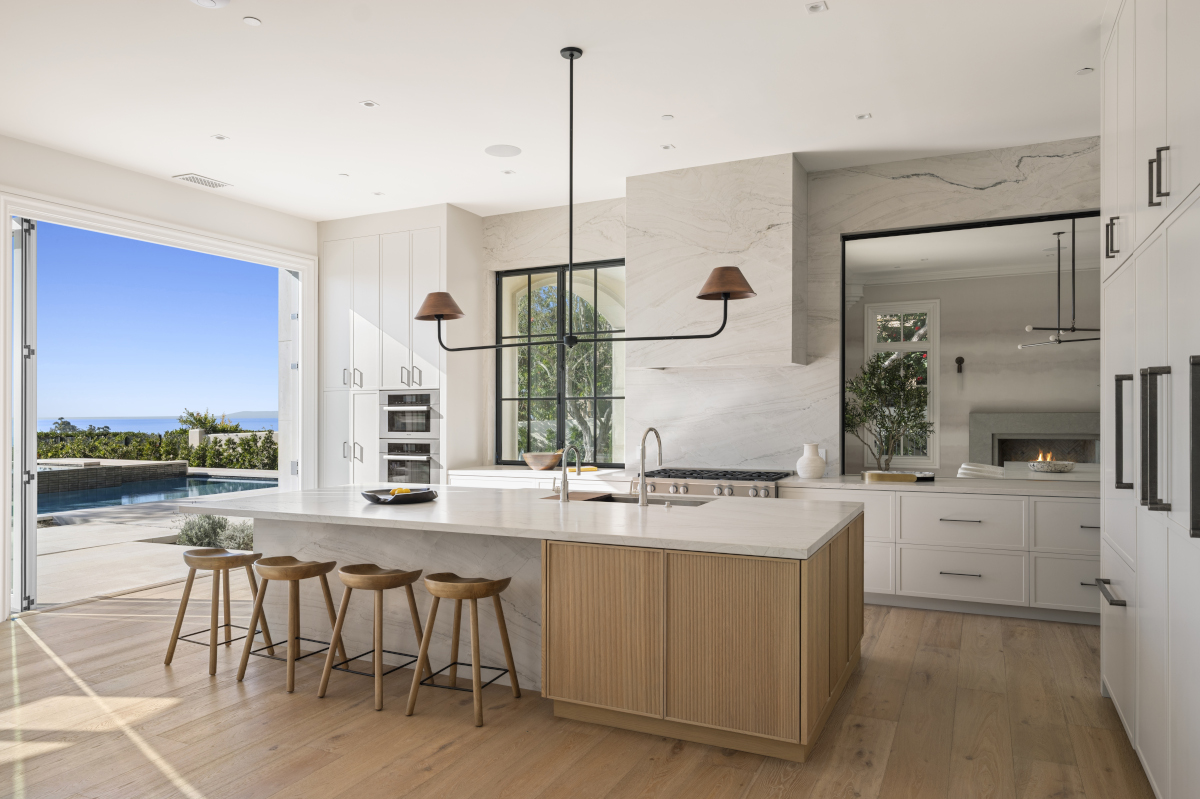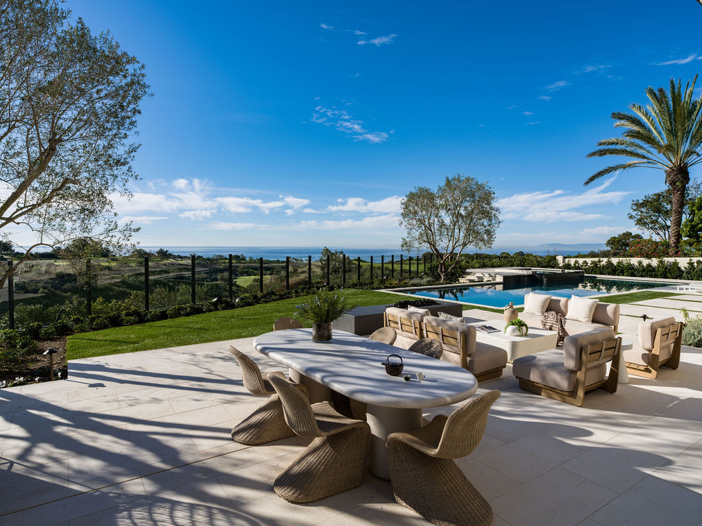 While many residences in Pelican Hill are constrained by layouts that relegate outdoor living to a lower level, 24 Fairway Point offers a highly coveted differentiator: the resort-style backyard extends directly off the main living floor. This architectural choice creates a seamless indoor-outdoor transition through walls of bifold doors that creates a seamless transition between the indoor Great Room and the resort-style grounds. The perfectly appointed family room, dining room, and gourmet kitchen—featuring top-of-the-line Miele appliances, and marble countertops—flow effortlessly onto a limestone-tiled terrace. Here, views of the glistening Pacific Ocean and rolling fairways of Pelican Hill’s North Golf Course frame an outdoor sanctuary complete with a newly constructed pebble tech pool and spa, a cozy outdoor fireplace, and a grand island beside an oversized BBQ station.
