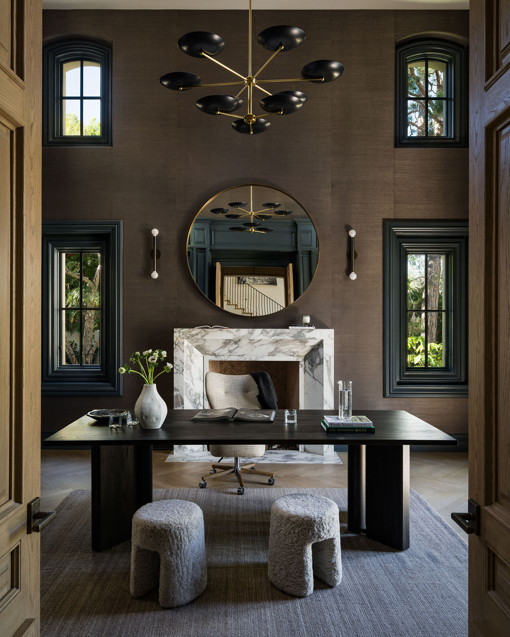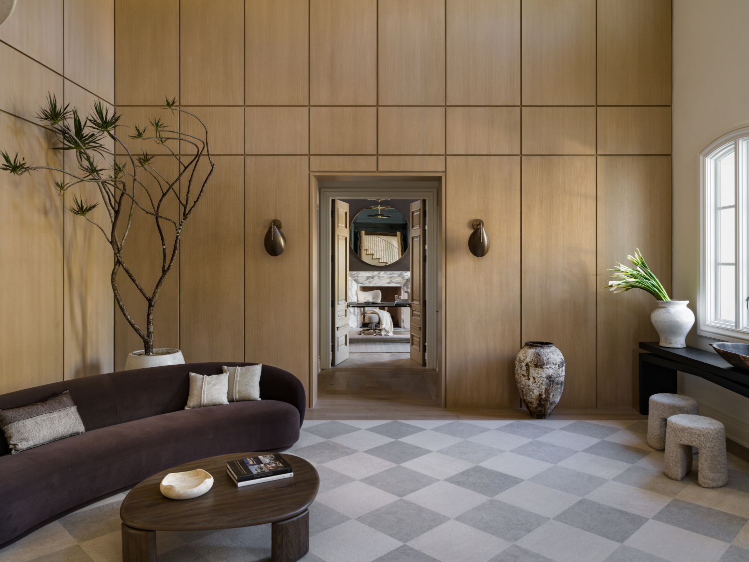 Having undergone a transformational renovation, a sense of arrival is established the moment you approach the property. But the true experience begins at the threshold of the expansive steel entry doors. A voluminous double-height foyer creates a breathtaking first impression, anchored by magnificent custom chandeliers that illuminate the custom oak panelling and artisanal Venetian plaster walls. This grand entry sets a tone of understated opulence, immediately drawing the eye toward the meticulously curated finishes and the sweeping scale of the residence. Just off the entry, a two-story library with soaring ceilings and a marble-clad fireplace offers an intimate scholarly retreat, providing a quiet sanctuary that opens directly to the lush, manicured front grounds.